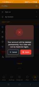 Once you confirm deletion, all your data, including bookings, reviews, and account details, will be permanently removed.